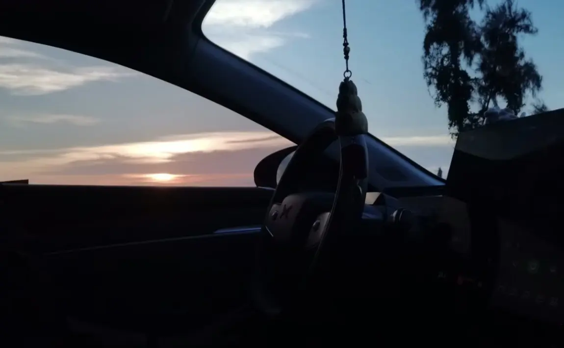 方向盘上的小鹏标识在暮色里若隐若现,车窗外是粉蓝渐变的天空,连风都带着温柔的气息。停下车静静待着,让疲惫在这片静谧里慢慢消散,这是MONA给我的专属治愈时刻。
