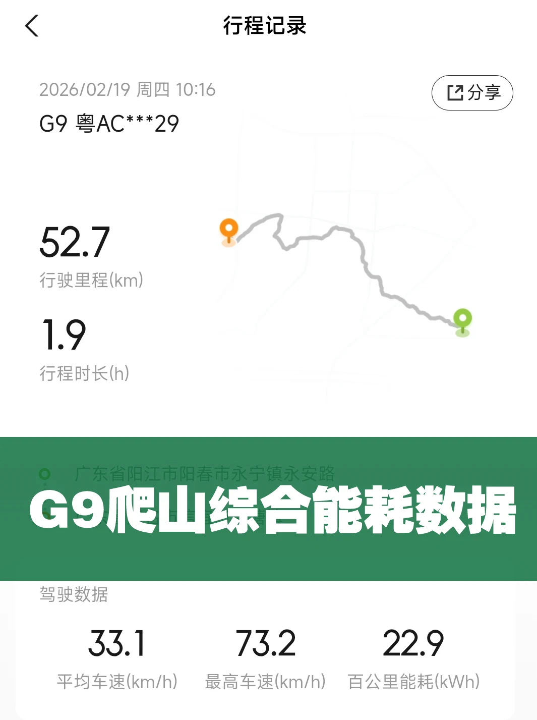 我很满意G9的春天出行能耗表现!