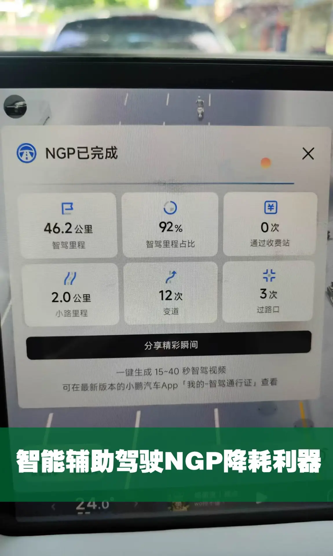 在第一天来程熟悉了路况后, 次日回程,我们就放心将50KM的路程(县道、乡道)交给小P智能驾驶了!