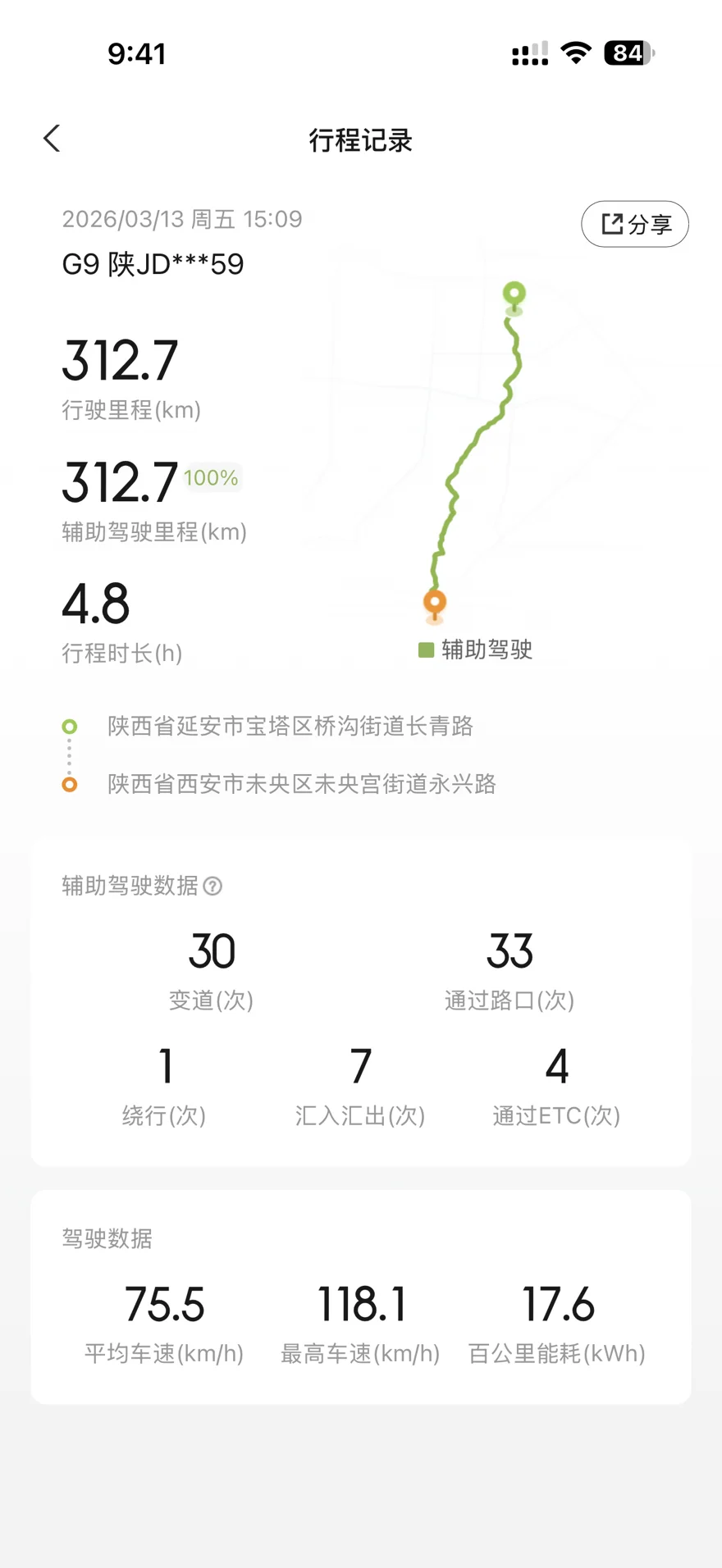 #我和春天有个约会# 春天一到,就想开着我的小鹏G9出去兜风。这次从延安到西安跑了个来回,跑完只有一个感受:好开、省电、还巨省钱!