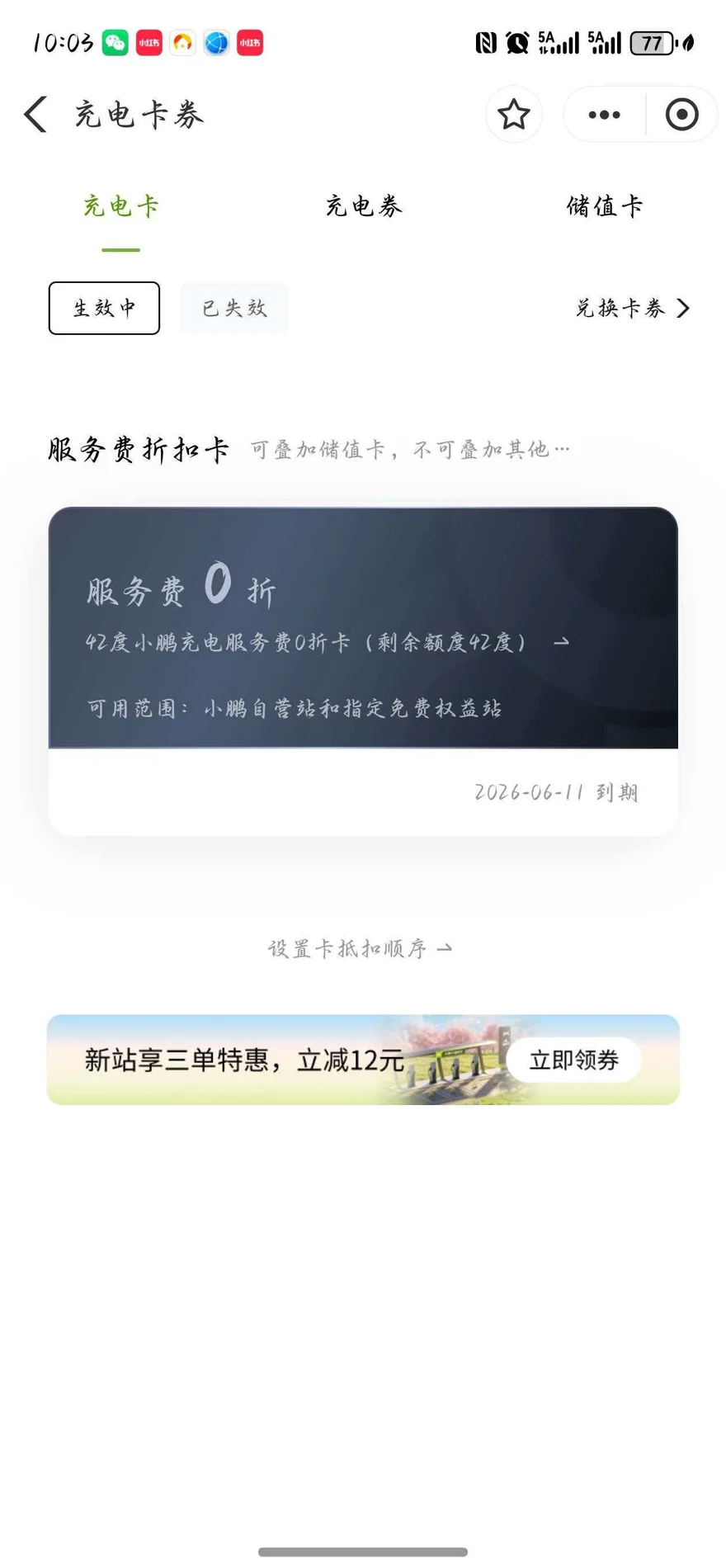 这次出门刚好赶上小鹏的春日充电福利,0折服务费充电卡、1折券、5元服务费券全都用上了,去小鹏自营站充电,直接把服务费省到底!