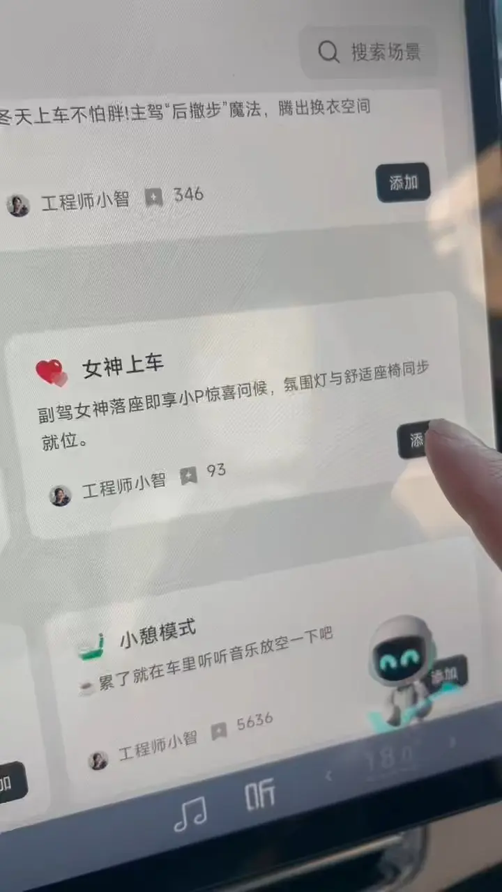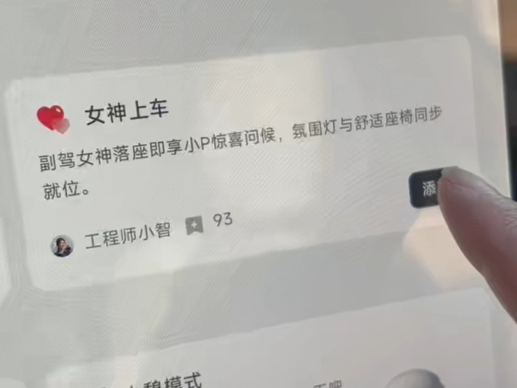 专为女鹏友量身定做的智慧场景,落座语音问候,氛围灯亮起,播放歌单