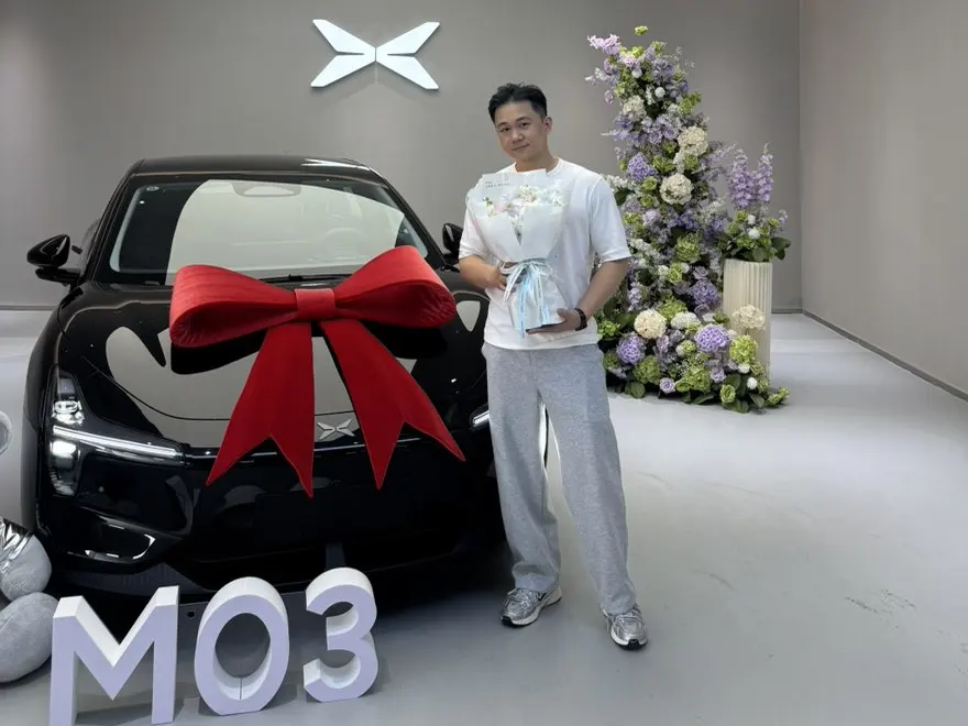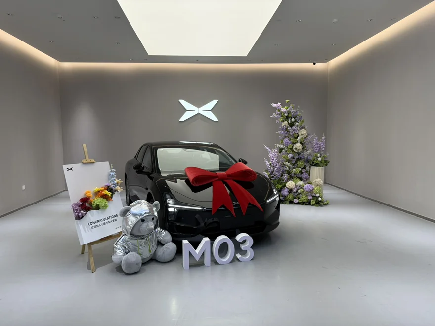 盼了许久,终于在交付中心见到我的小鹏M03黑色智驾版。远远望去,暗夜黑车漆在阳光下泛着细腻光泽,低趴掀背造型搭配熏黑星舰灯组与隐藏式门把手,宛如蓄势待发的“黑武士”,气场十足。绕车检查,漆面均匀细腻,轮胎与玻璃均为近期生产,里程仅5km,新车状态让人安心。