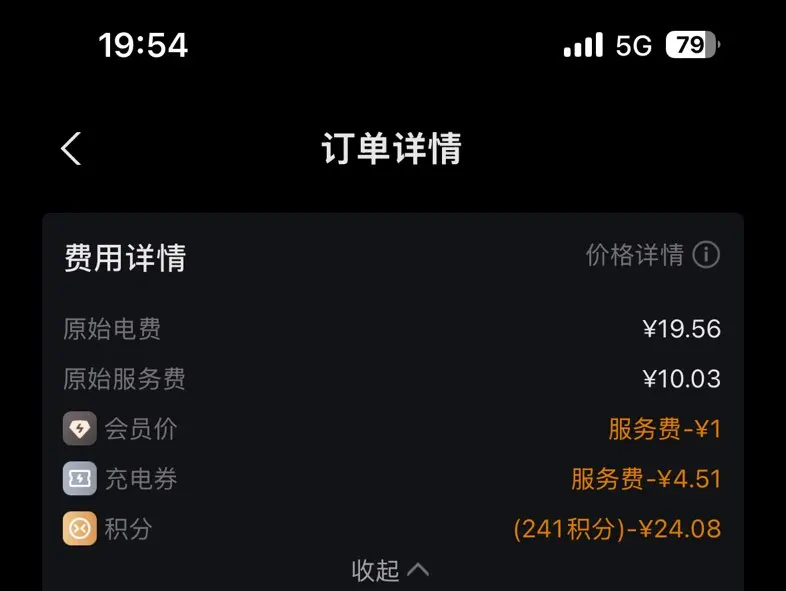 由于工作关系下班较晚,但是能吃到谷峰电的红利,家附近4公里的小鹏超冲谷电5毛7,52度电24块钱。爽歪歪了,谢谢小鹏。