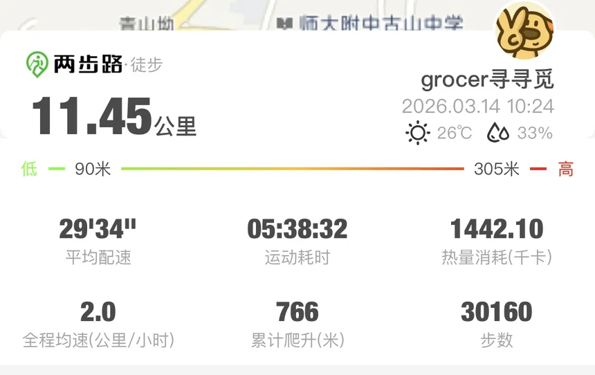 5小时38分的跋涉,30160步的坚持,从最初的气喘吁吁,到登顶后的豁然开朗:自律从不是苦行僧般的煎熬,而是在坚持中遇见更坚韧的自己✊
