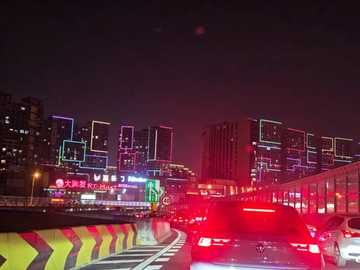 白天上完牌 黄昏就开着小鹏 来一场说走就走的追逐落日之旅。城市的夜景也可以边开边记录了。傍晚的导航背景也是一片晚霞,非常治愈。