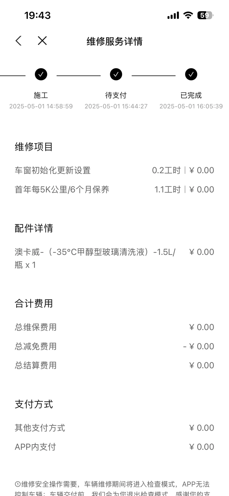 🚗🚗再看维保和售后💛:首年5000公里保养全免费,车窗初始化、玻璃清洗液更换这类小问题也都是0元解决,完全不用额外掏腰包。