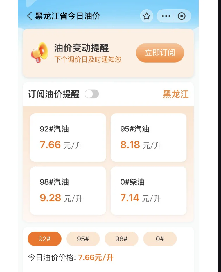 2、哈尔滨中石油92#汽油7.66元/升,加满一箱油55升油箱380元左右,可以跑400公里,每公里合0.95元,加满一次油可以跑7天
