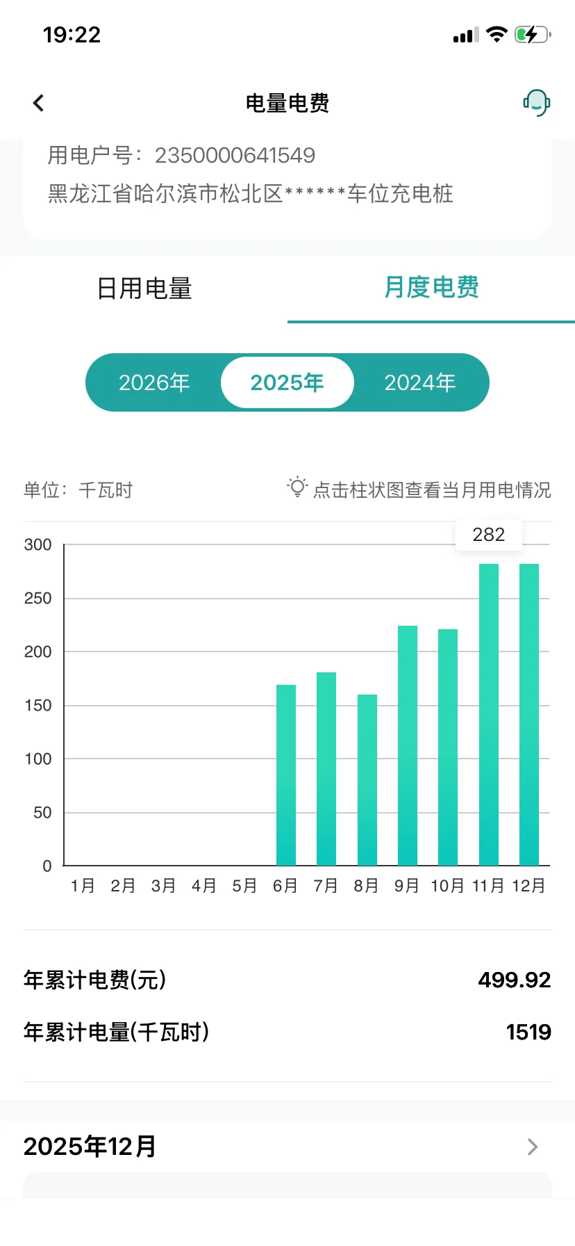 1、电费:电充🔋低谷电哈尔滨(23:30-5:30)实际电费0.25元/度,充满60度电,仅需18元左右,可以跑450公里左右,每公里合0.04元,上下班路程50公里,充满一度电可以跑8天