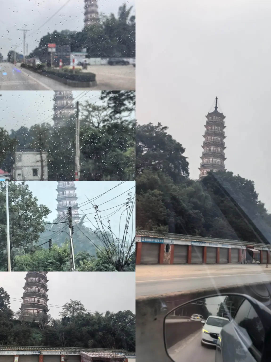可惜下雨没登塔,塔外九层内十七层,带娃考虑体力只在外面打卡啦~