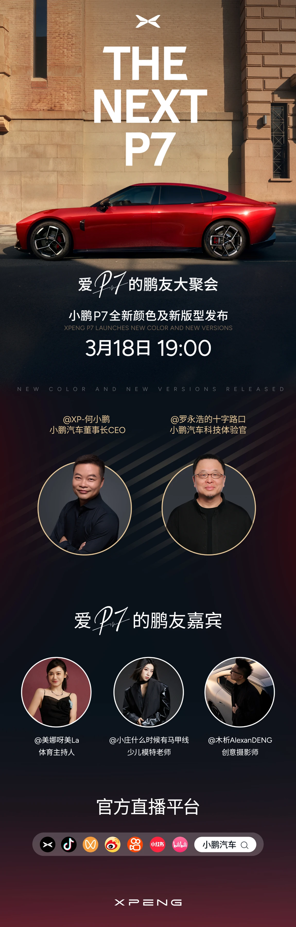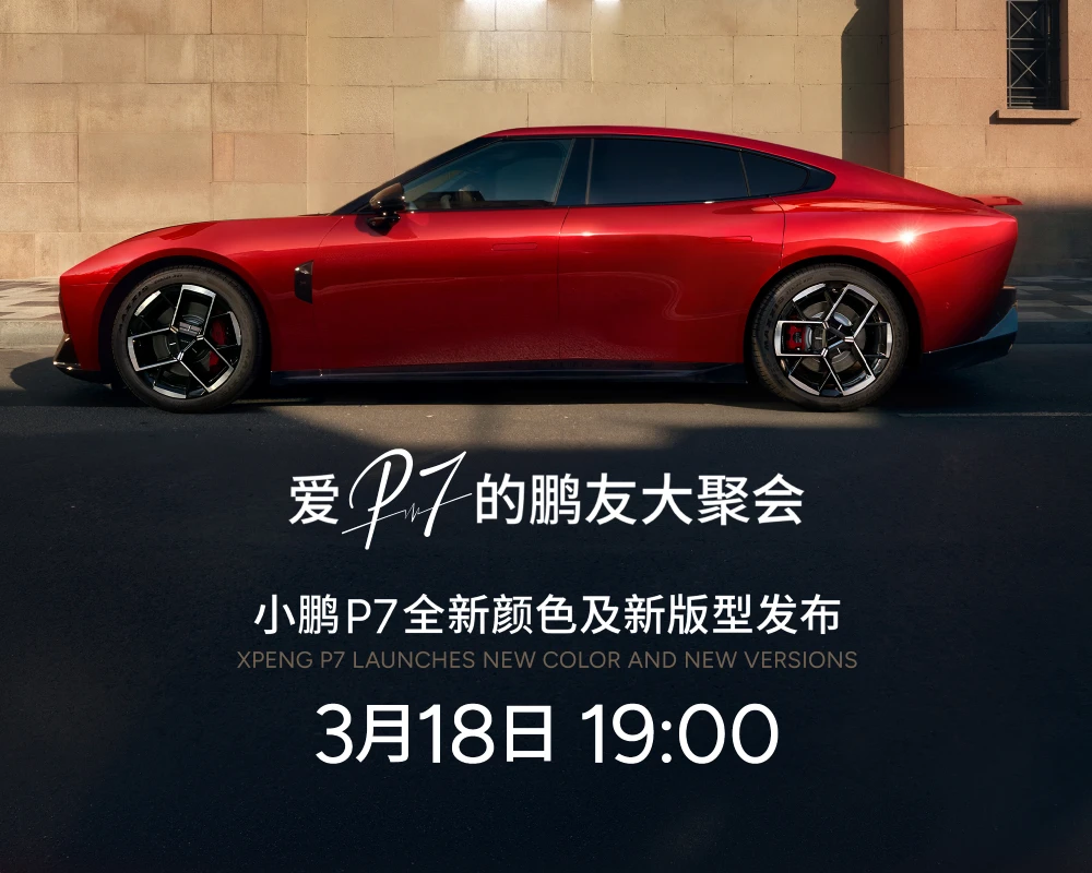 3月18日19:00,爱P7的鹏友大聚会--小鹏P7全新颜色及新版型发布!我们今晚见!