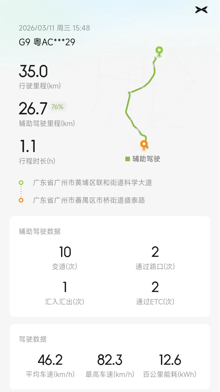 一路有XNGP辅助驾驶加持,跟车、避让、超车……G9都能提供稳稳的安全感;早、晚高峰再拥堵,也不用频繁启停,堵车不再是我的焦虑,反而变成了我放松的独处时刻。可以说智驾已经完全融入了我的生活,每天通勤路上大概有70%+都会使用XNGP辅助驾驶功能,因为它真的可以让通勤更加的从容。