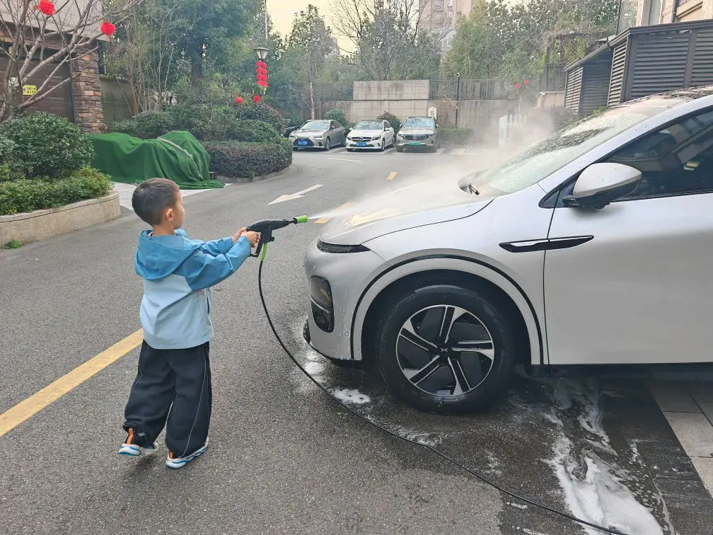 每次自驾出行前后,都是例行的亲子洗车环节。