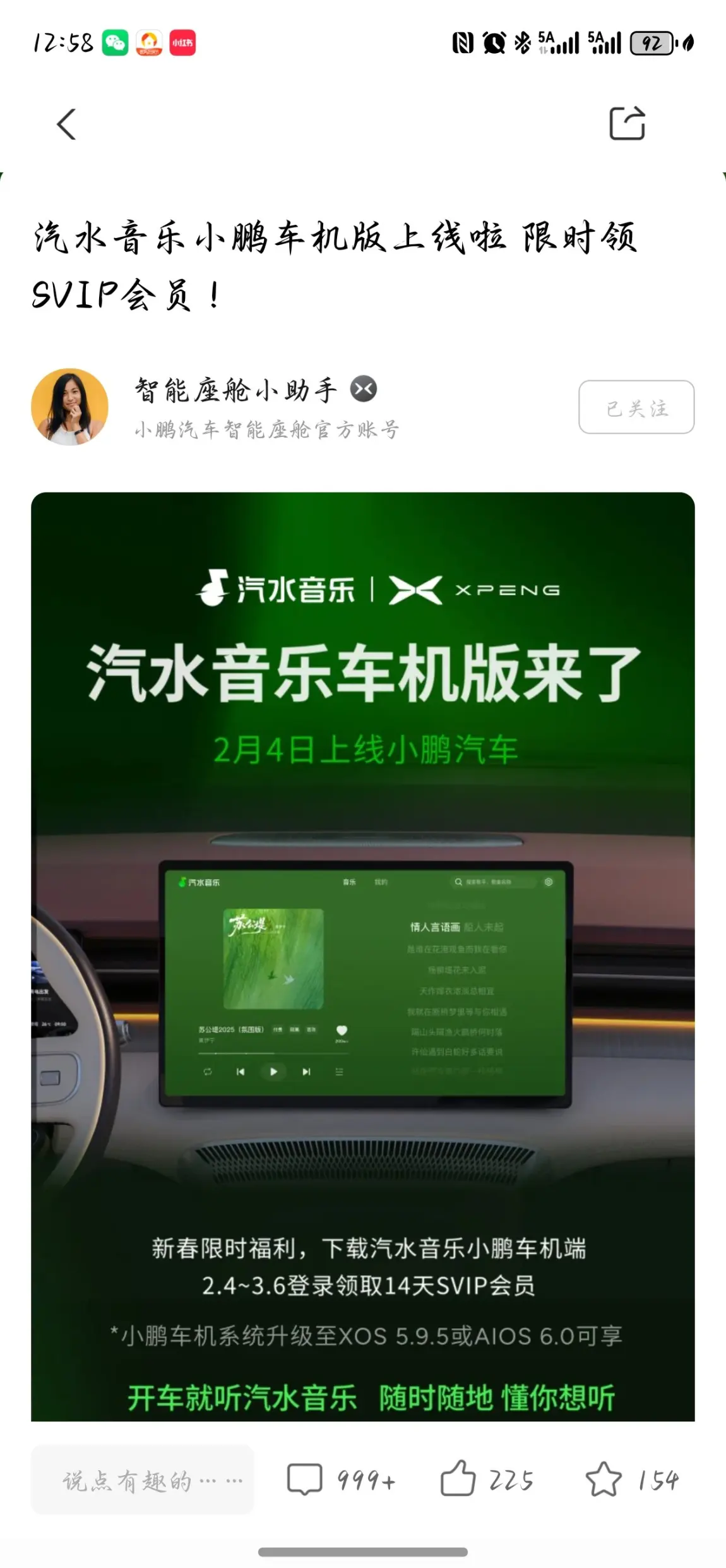 小鹏直接送上车机流量包📶