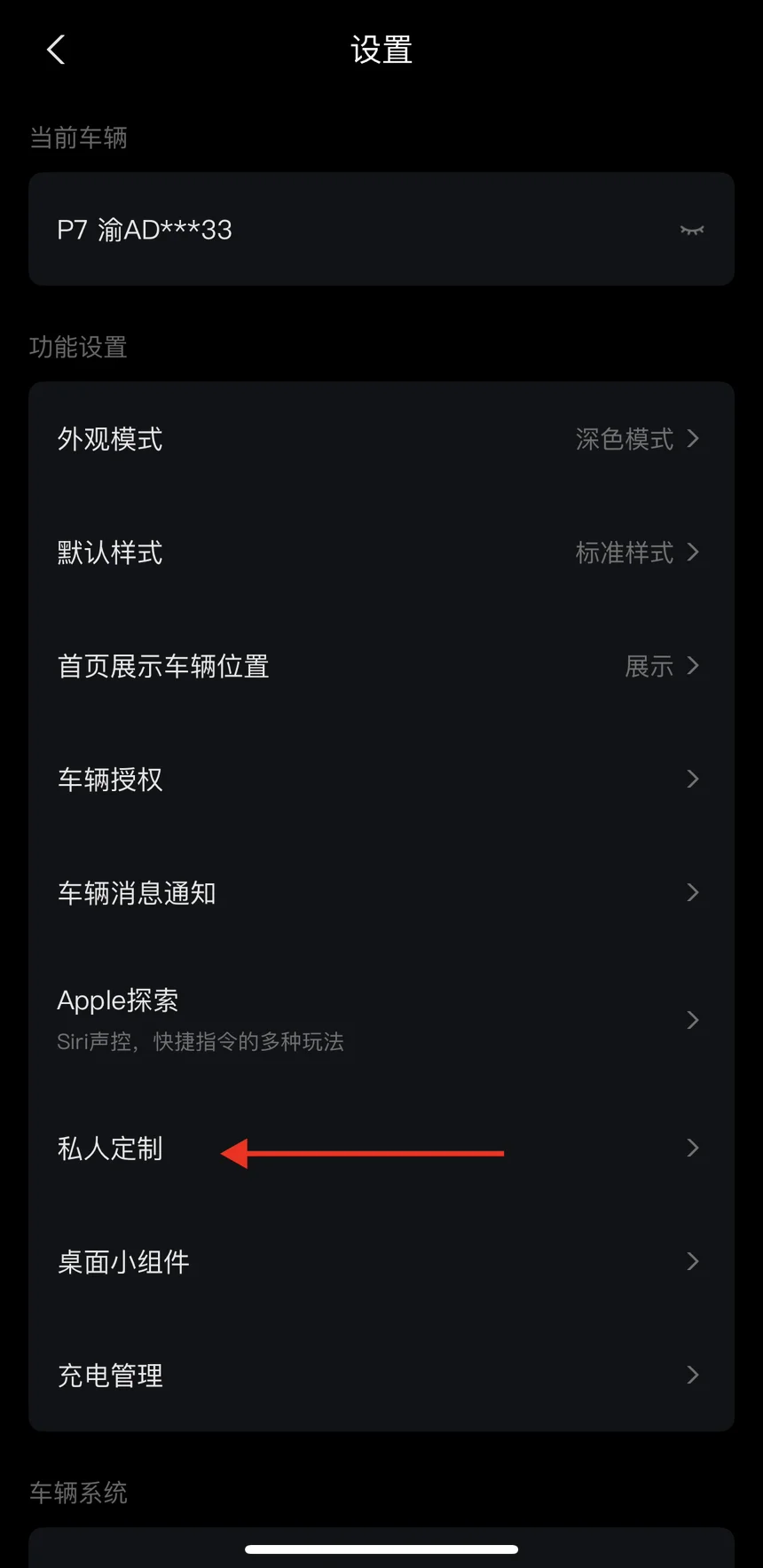 2. 在设置页找到「私人定制」选项,点击进入场景列表。