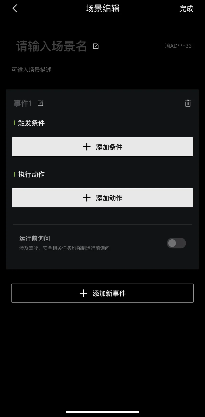 4. 输入场景名称(比如「浪漫出行」),添加触发条件和执行动作,就能实现语音/自动联动。