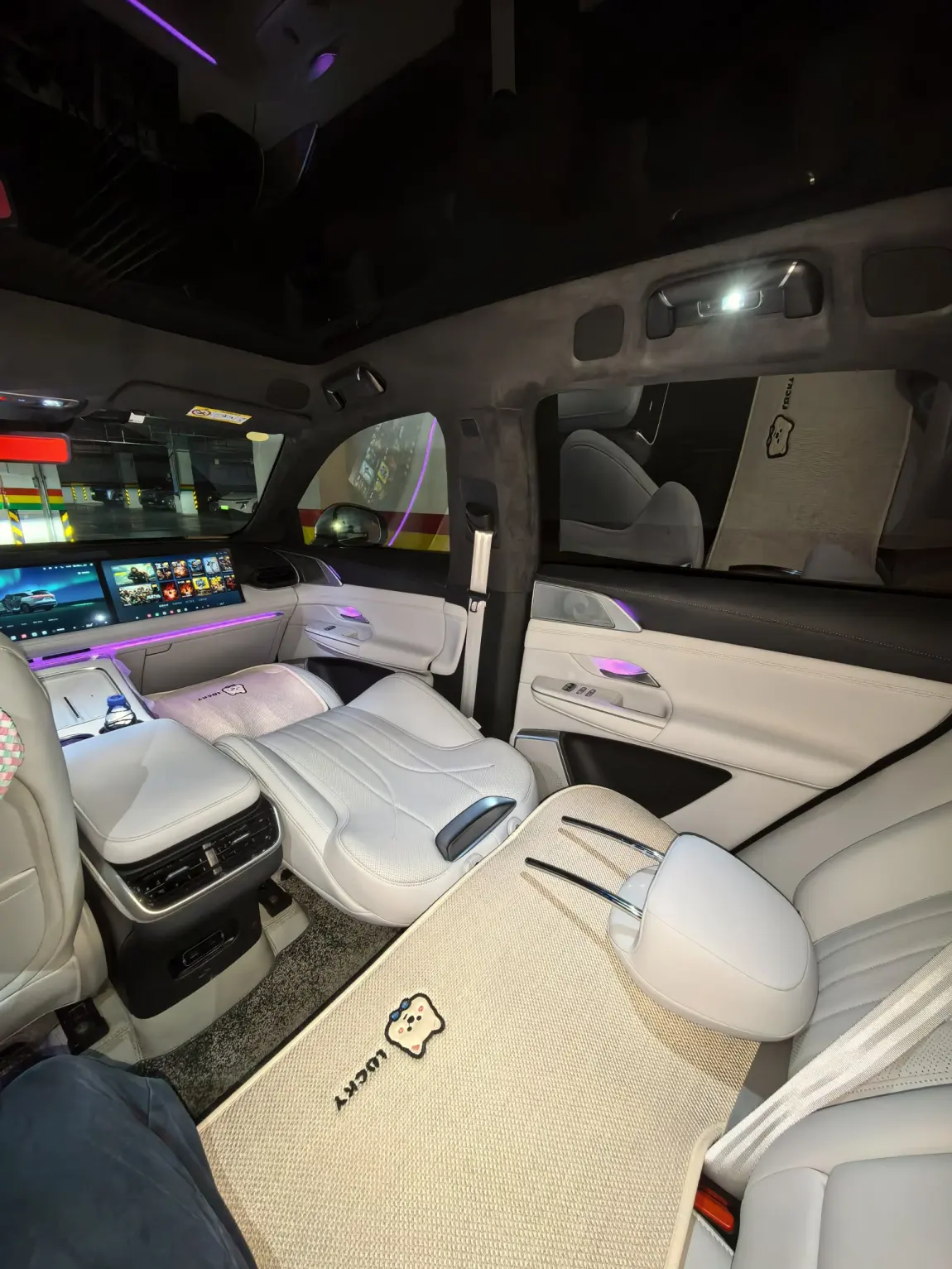 我还会特意准备一瓶喜欢的香薰,放在杯架里,淡淡的木质香能让人瞬间平静下来。偶尔也会打开氛围灯,暖黄色的光铺满整个座舱,像被一个温柔的拥抱包裹着。
