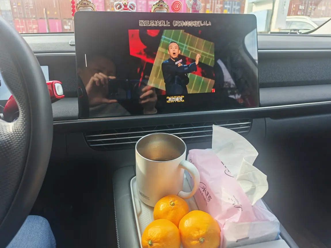 中控屏放着喜欢的节目,暖光漫过杯架里的保温杯,氤氲出淡淡的茶香。三颗橘子在阳光下泛着蜜色光泽,纸巾袋的粉色温柔了整个空间。没有催促的消息,没有嘈杂的人声,只有车外偶尔掠过的风声,和车内缓慢流淌的松弛。