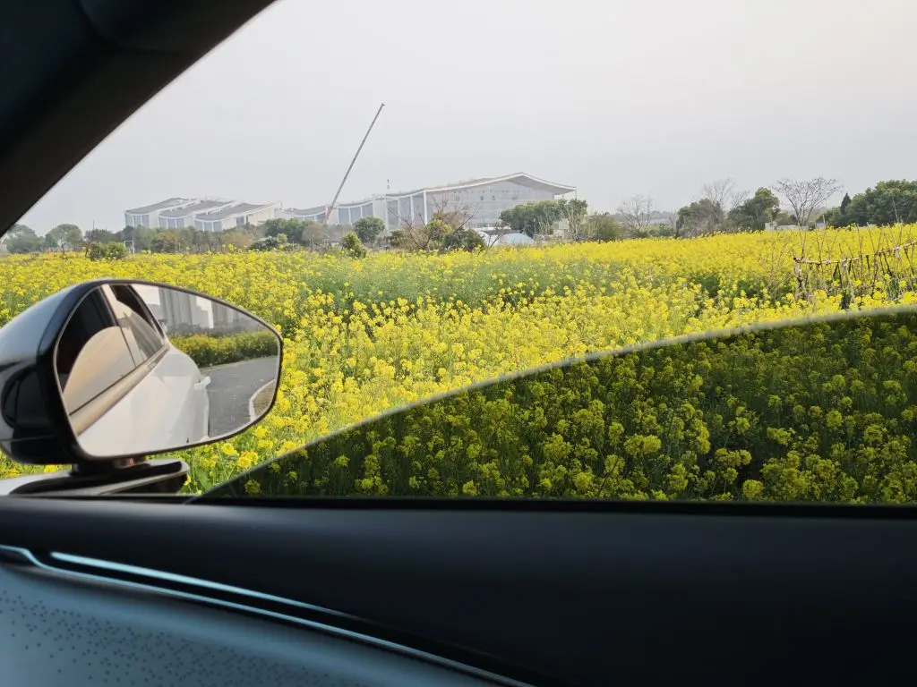 后视镜里映着车身的弧度,车内的氛围灯泛着柔和的光,连打孔饰板都在悄悄散发着安稳的气息。不必追赶时间,也不用在意目的地,就这么靠着座椅,看阳光穿过玻璃落在膝头,看远处的建筑在花海尽头慢慢清晰。