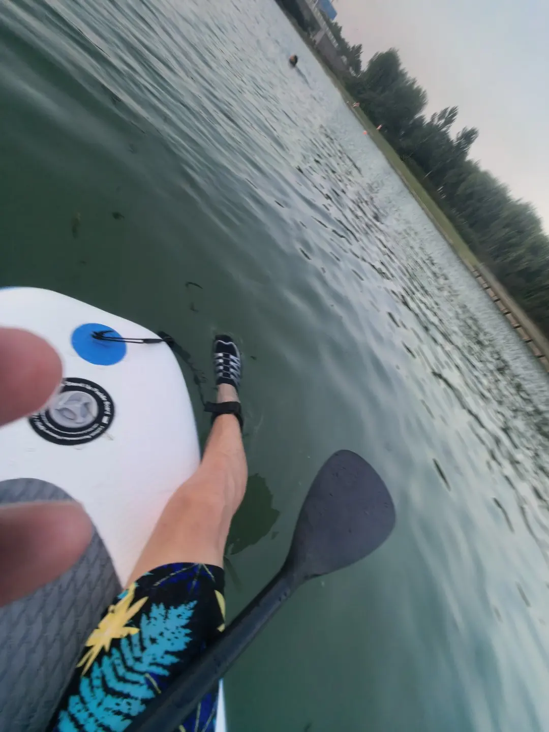 第一次玩桨板,意外觉得自己还挺有天赋,全程稳稳当当,居然一次都没落水😎。大概是我体重较轻,再加上时刻收紧核心,稳定性才格外好。