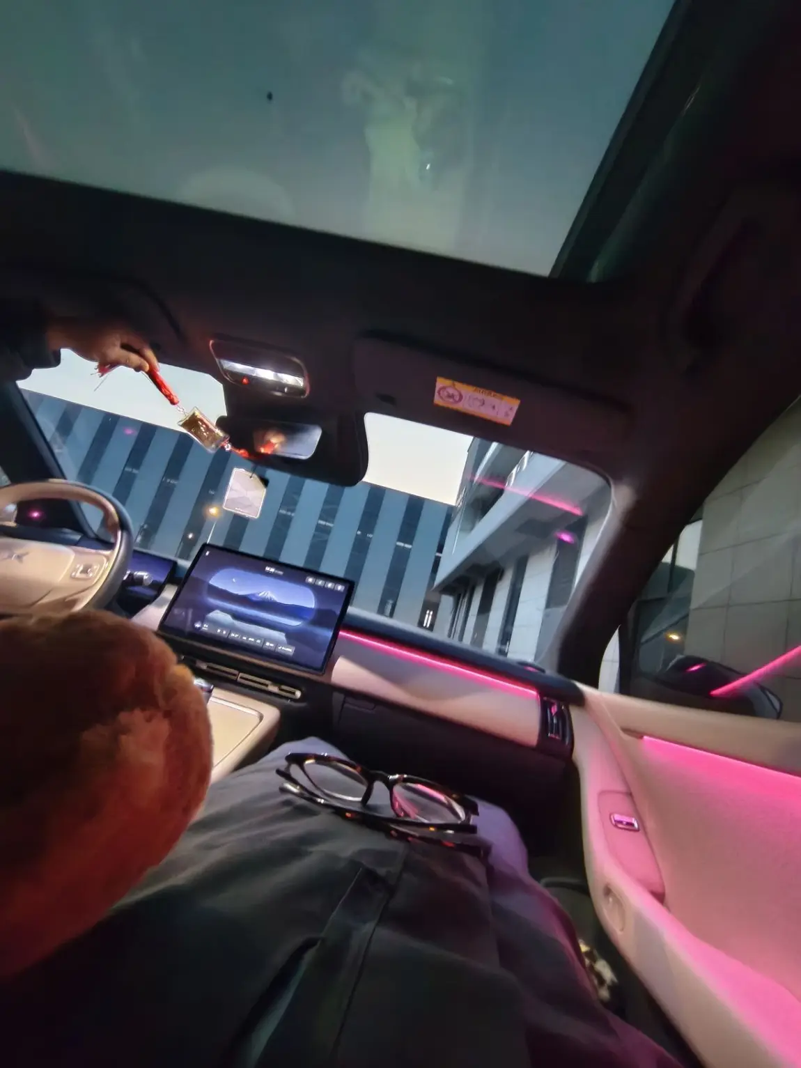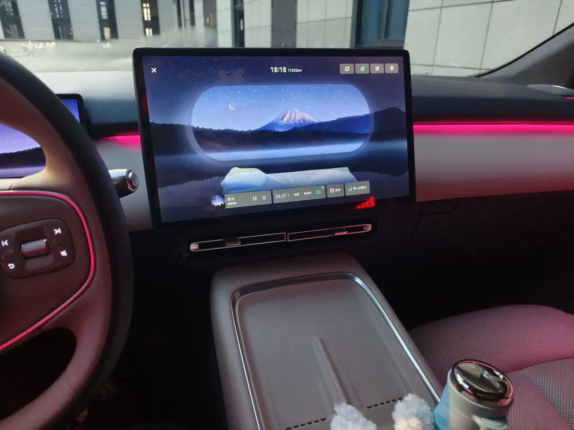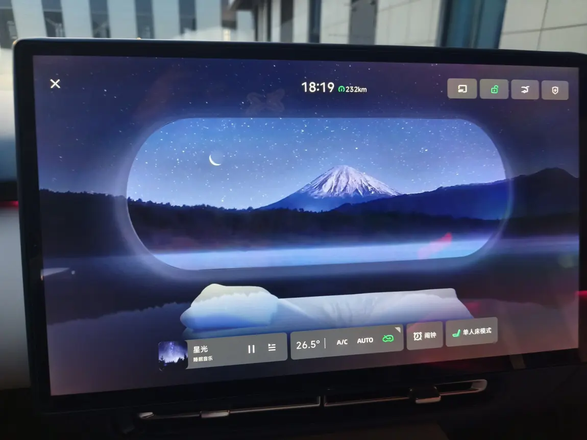 车机自动帮我调好26.5℃舒适空调🌱,风感柔得像春日晚风,完全不会吹得头疼;同时响起舒缓的音乐🎶,音量刚好盖过外界喧嚣,又不会吵到睡意💤。