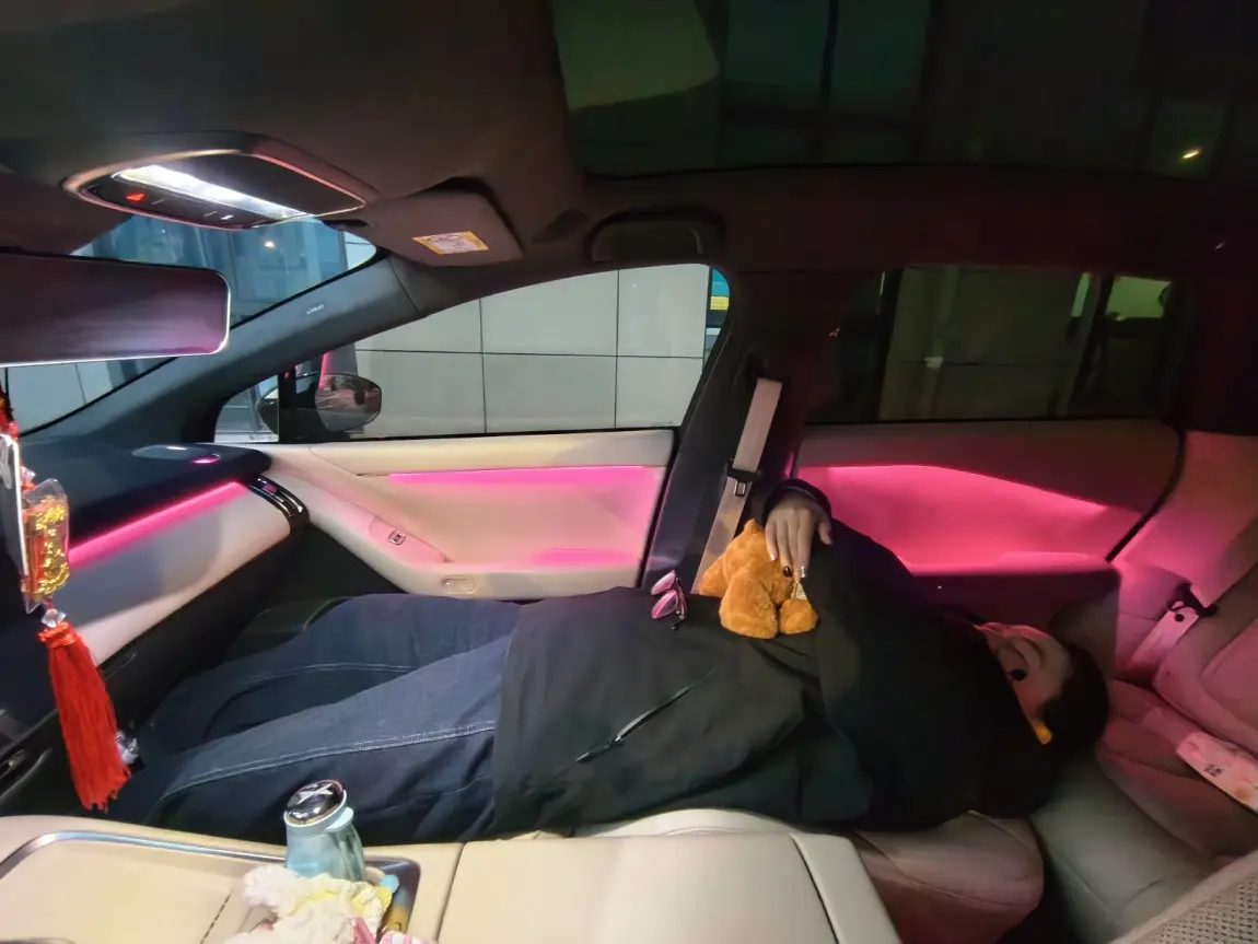 一键切换副驾睡眠模式,座椅秒放平成一张软乎乎的大床🛏️,头枕自动贴合颈椎,连腰都被稳稳托住,安全感拉满。更绝的还有大床模式,秒变五星级酒店大床房。