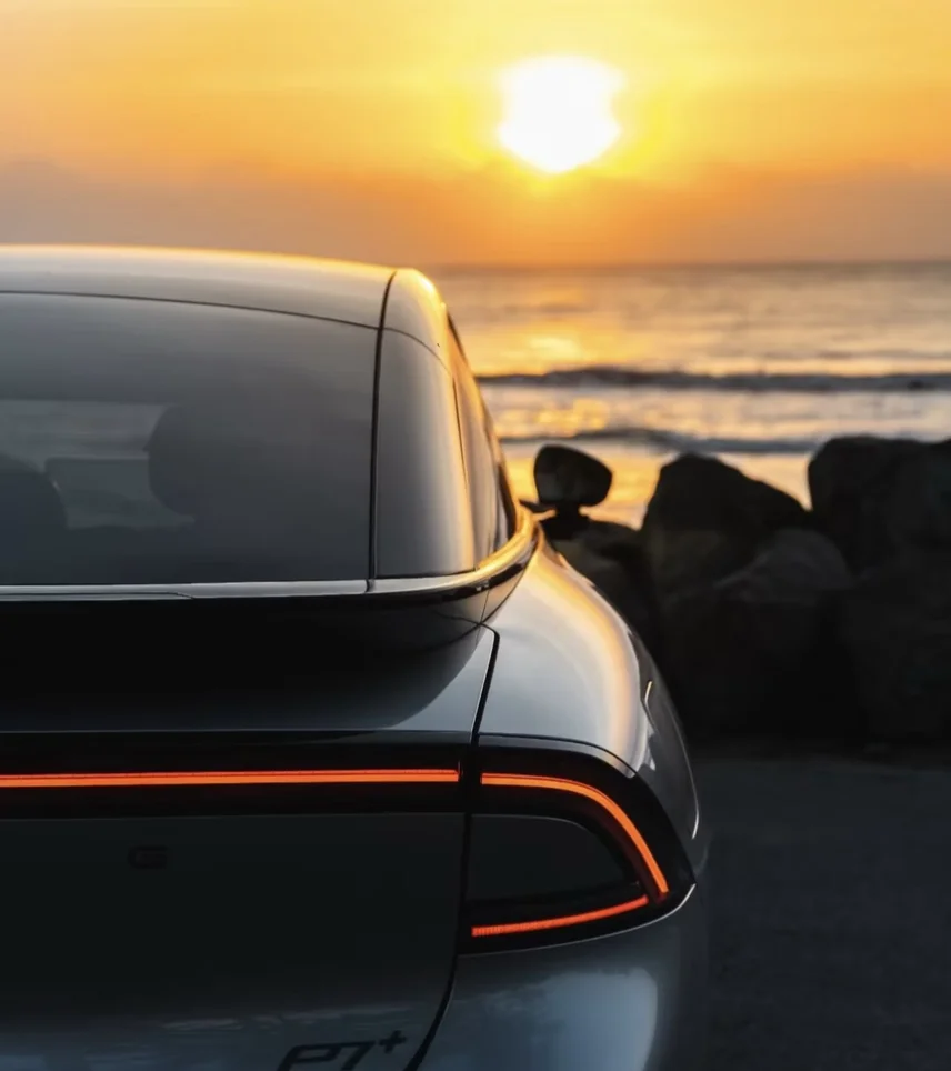 • 🌊 追过海边落日,P7+的贯穿尾灯与橘色晚霞同框,氛围感直接拉满;
