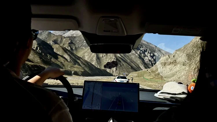 进入甘肃和青海境内后,路况变得复杂,不仅有漫长笔直的高速,还有蜿蜒的国道。开启NGP(智能导航辅助驾驶)后,M03表现得像个经验丰富的“老司机”。在高速上,它精准地控制着车速和车距,遇到大车会自动避让,进出匝道也丝滑流畅。最让我感动的是在青海湖环湖路段,面对起伏路和非机动车混行,它的识别能力非常敏锐,稳稳地保持在车道中央,大大减轻了我的精神负担。