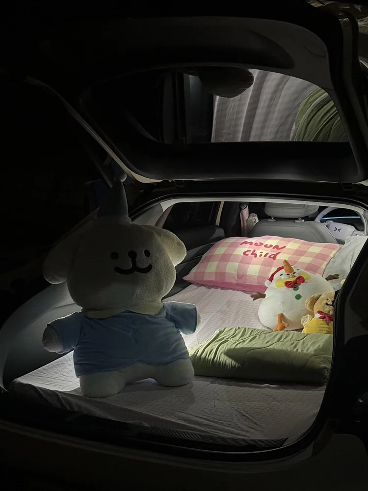 出发前,面对塞满帐篷、氧气瓶、厚羽绒服和摄影器材的后备箱,我一度担心M03会“吃不消”。毕竟,这是一台轿跑造型的车。但当掀背式尾门高高扬起的那一刻,所有的顾虑都烟消云散了。