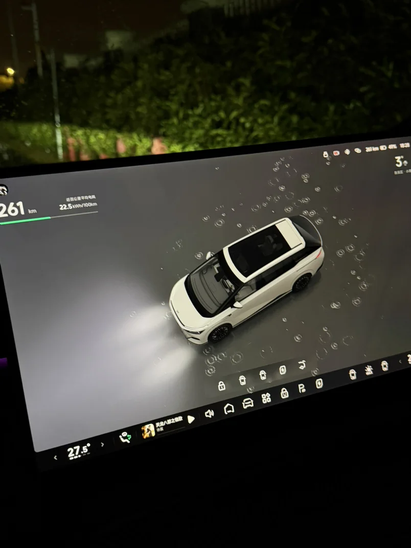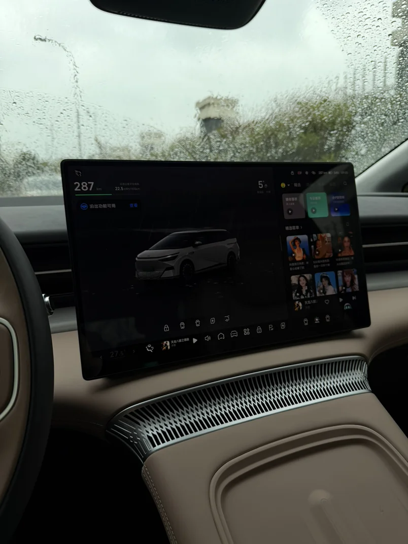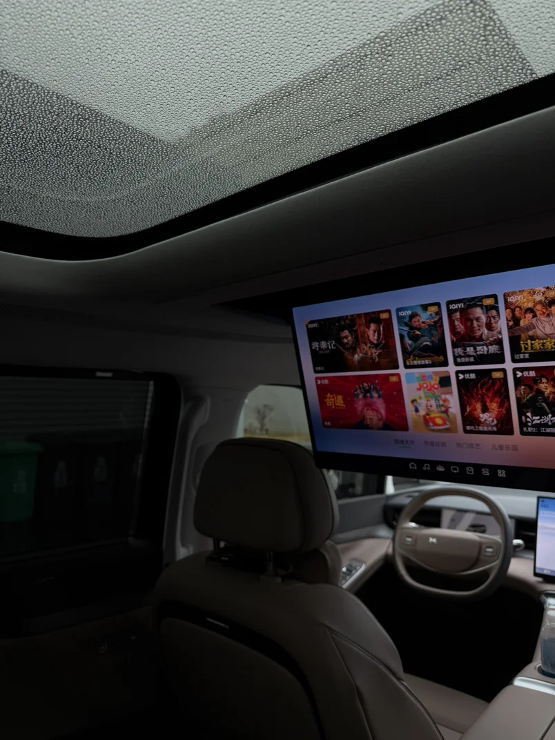 在车内享受一下独处的时光,看着天窗上的雨珠和车机界面的下雨场景,聆听雨声,感受天黑,享受一个人的空间,很踏实,平静……