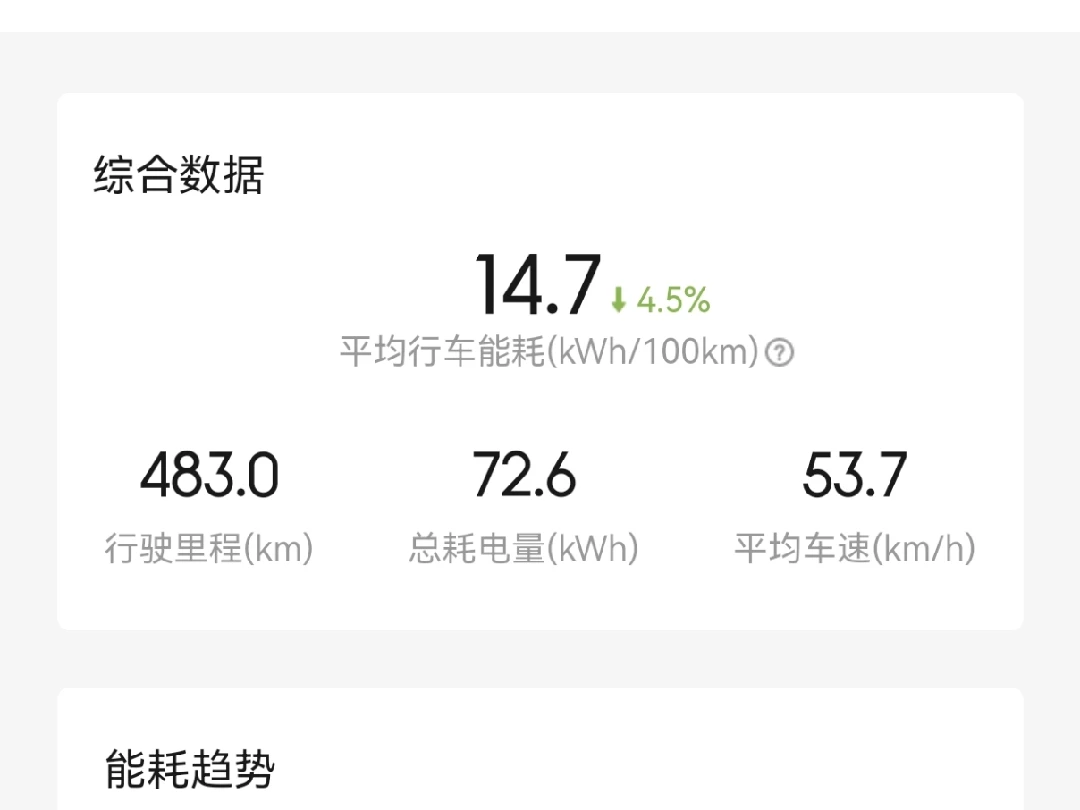 平均行车能耗:14.7 kWh/100km ↓4.5%
