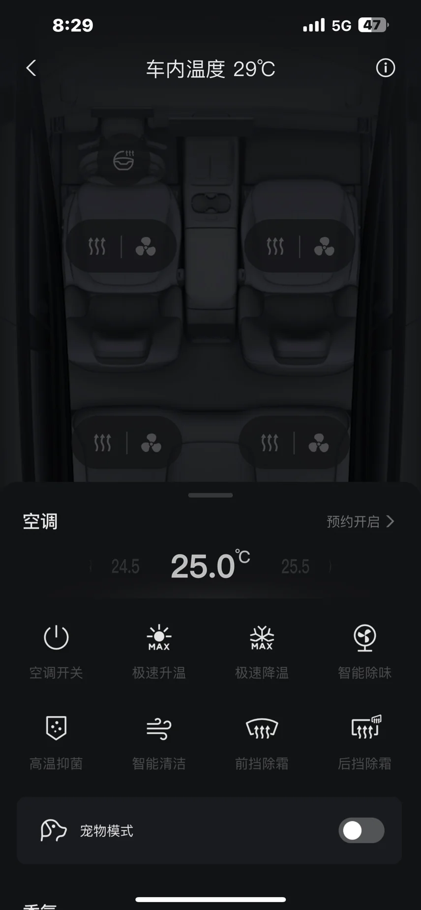 很多车友觉得开空调费电,其实关键在“怎么开”。我现在空调必开节能模式,空调会自动进入低功耗运行状态。其他设置是:温度24℃、风力3档、开启内循环、开始座椅通风。这个组合既能让车内保持舒适,又不会过多消耗电量。如果天气稍热,我会打开App提前打开空调降温15分钟,而不是上车才急着开始极速降温,这个小习惯帮我省下不少电。