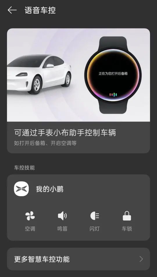 原理:手机的"智慧车控"作为解锁的中间权限终端,手表作为交互的语音前端。