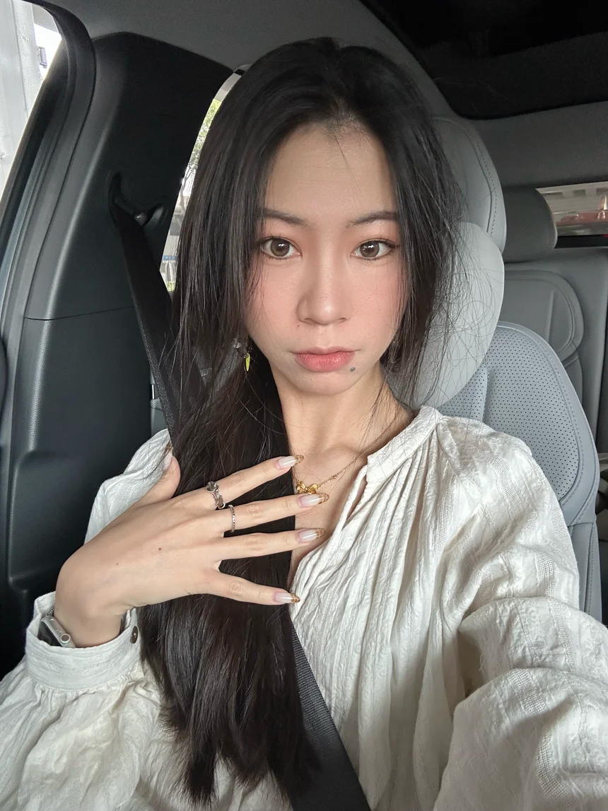浅白色吊带长裙穿上就出门,头发随意散落。去超市囤货的路上,窝在座椅里像裹在云朵里,Mona的座椅通风功能让周末的慵懒感拉满。