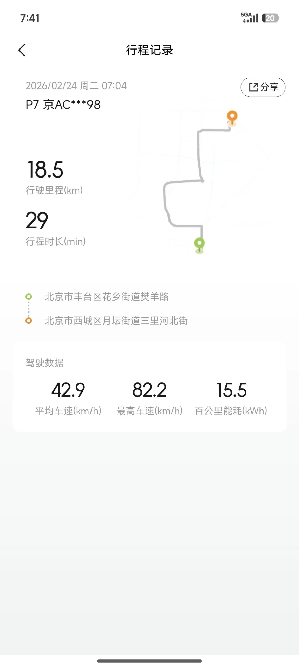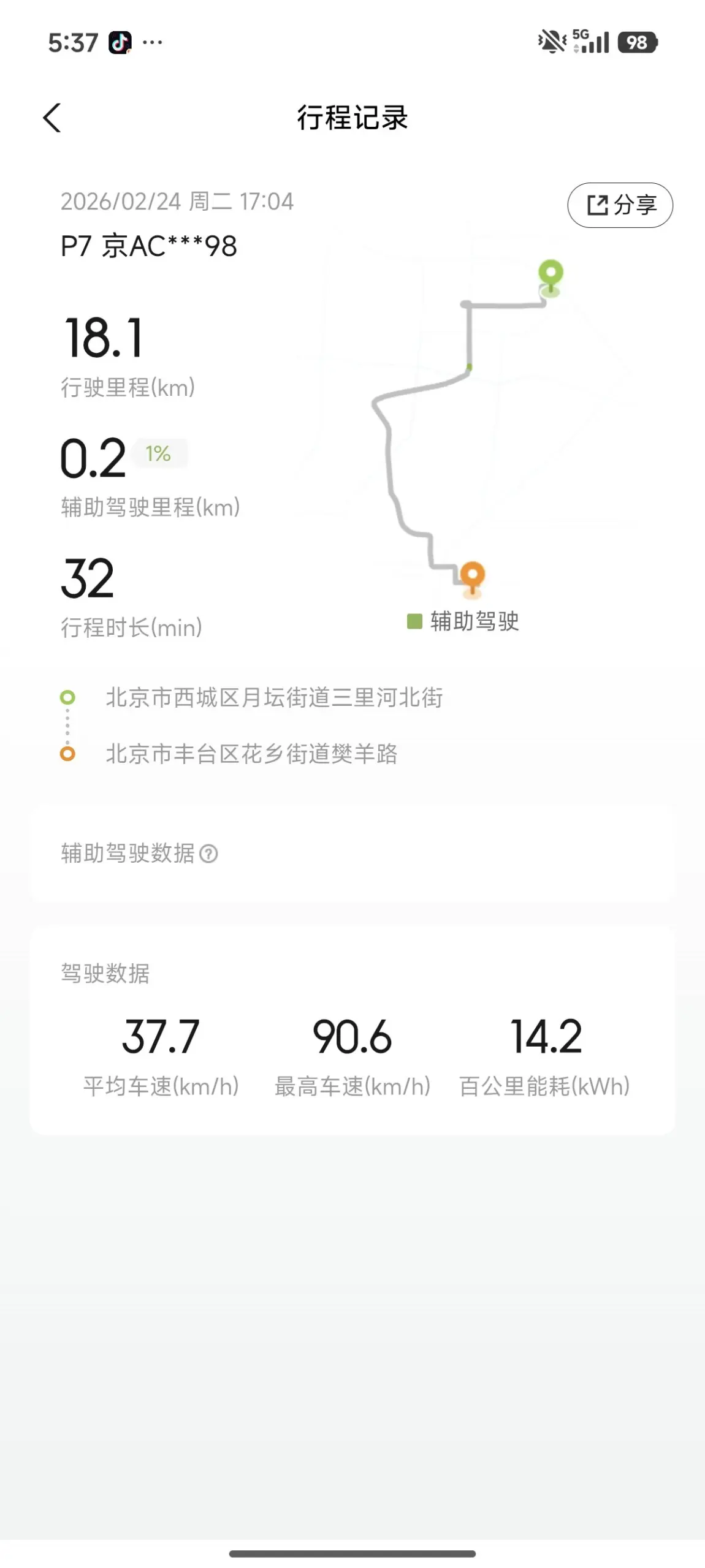 这次分享的是年后的一日通勤,不得不说,气温回升后,能耗是有所降低,在14-15左右,能够令人满意,同事们见到我的车也是夸赞帅气逼人,下班路上还尾行我哈哈