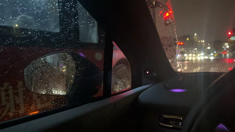 雨滴打在车窗上,淅淅沥沥