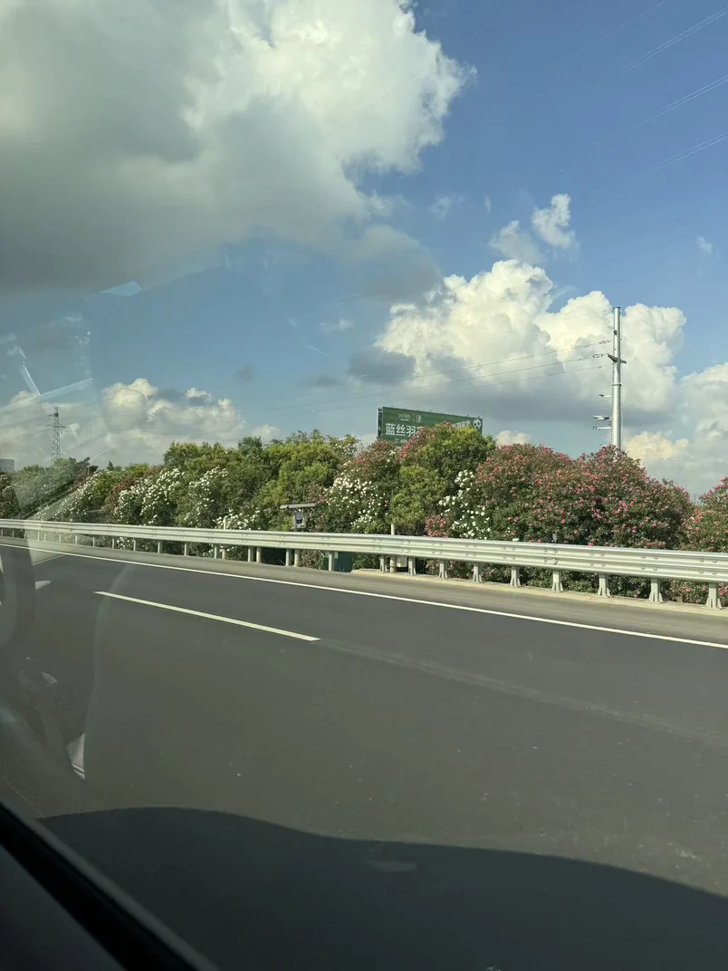 晴空下白云舒展,道路向远方笔直延伸,路边的绿植在阳光下泛着鲜亮绿意,高速行驶时的开阔视野,让人满心都是自由与畅快。