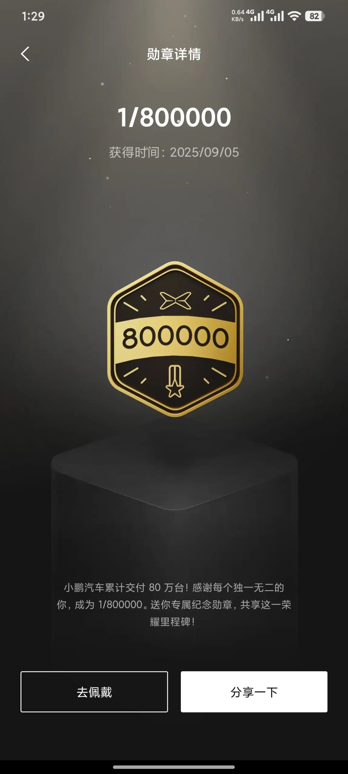 那一刻的心情,与其说是惊喜,不如说是一种强烈的归属感。这枚勋章背后,是小鹏汽车累计交付80万台的里程碑,而我,正是这80万分之一。