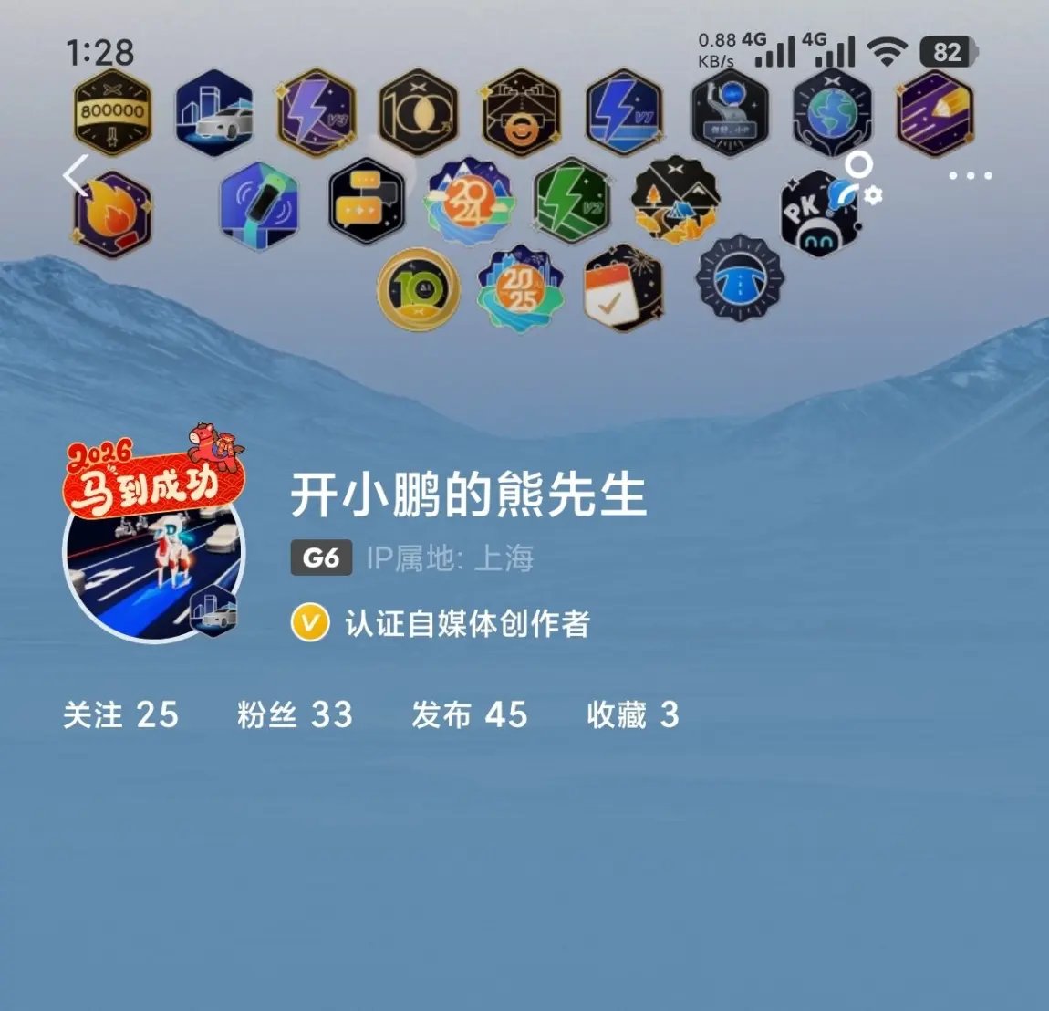 从提车时的忐忑好奇,到如今习惯了XNGP的从容,我见证了小鹏从新势力到主流品牌的蜕变。这枚勋章,是品牌与用户共同书写的荣耀,也是我作为G6车主,与数十万鹏友并肩前行的最好证明。