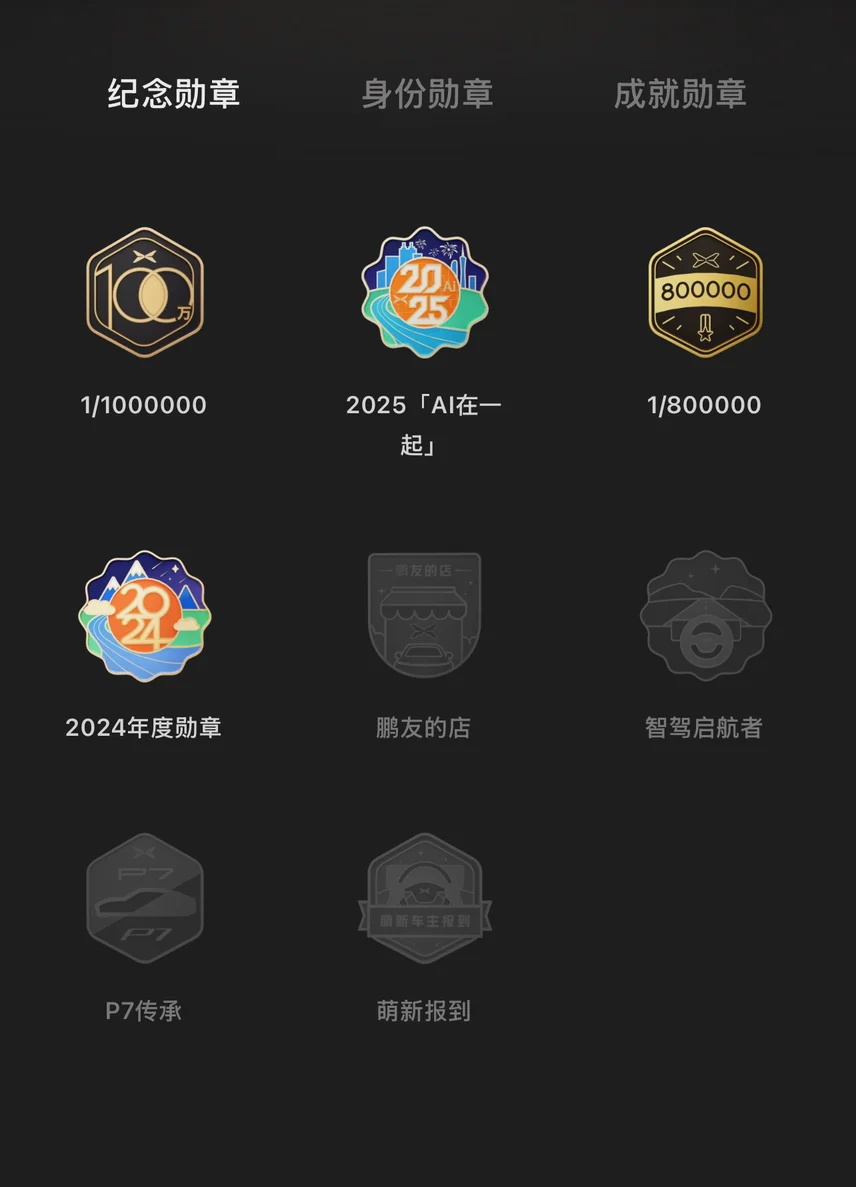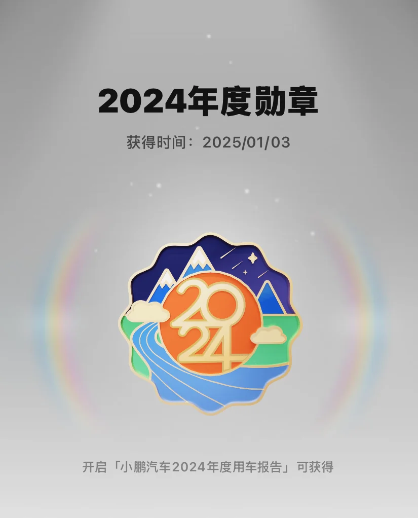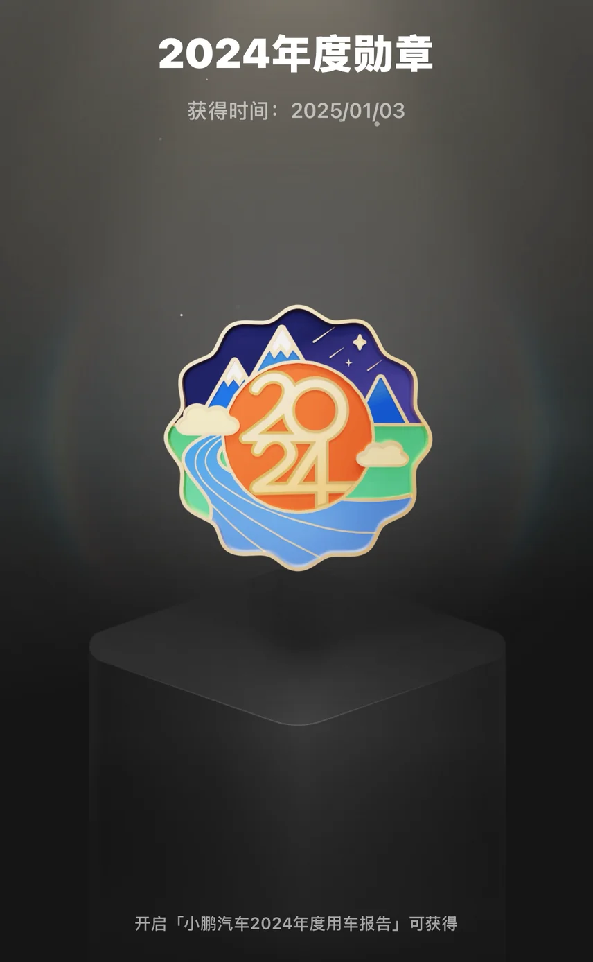 2025年1月3日,我在小鹏App里点亮了属于自己的第一枚勋章——2024年度勋章。