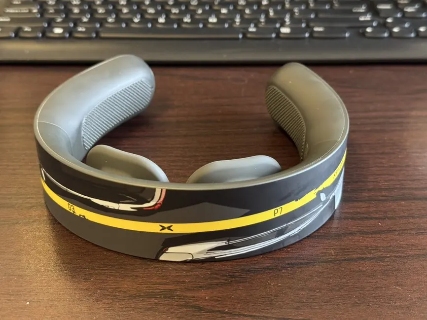 打开盒子太惊喜了,按摩仪非常轻便,表面满满的小鹏原素图案,灰色主调配上亮色系黄色配色,观感上就给人低调又不失高级。
