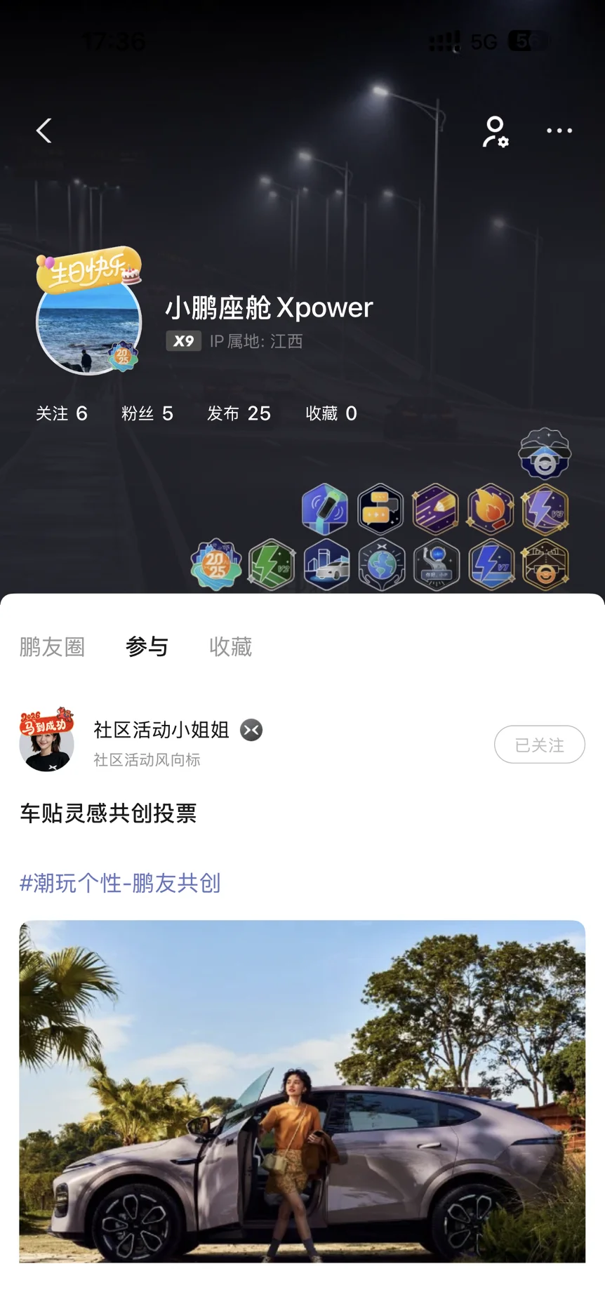 • 获得标准:在被小鹏 App 官方认证的充电+露营基地(或推荐露营地)签到,且在社区发布相关露营帖子累计特定数量(如 5 次)。