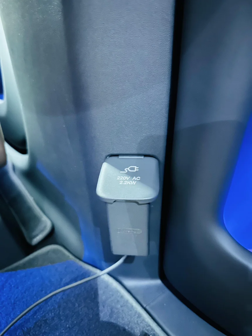 对我来说,幸福是小鹏给我的“电力自由”。看着这个 220V 的 AC 电源插座,就像看到了我所有“独处计划”的底气:无论玩多久,都不用担心电量。
