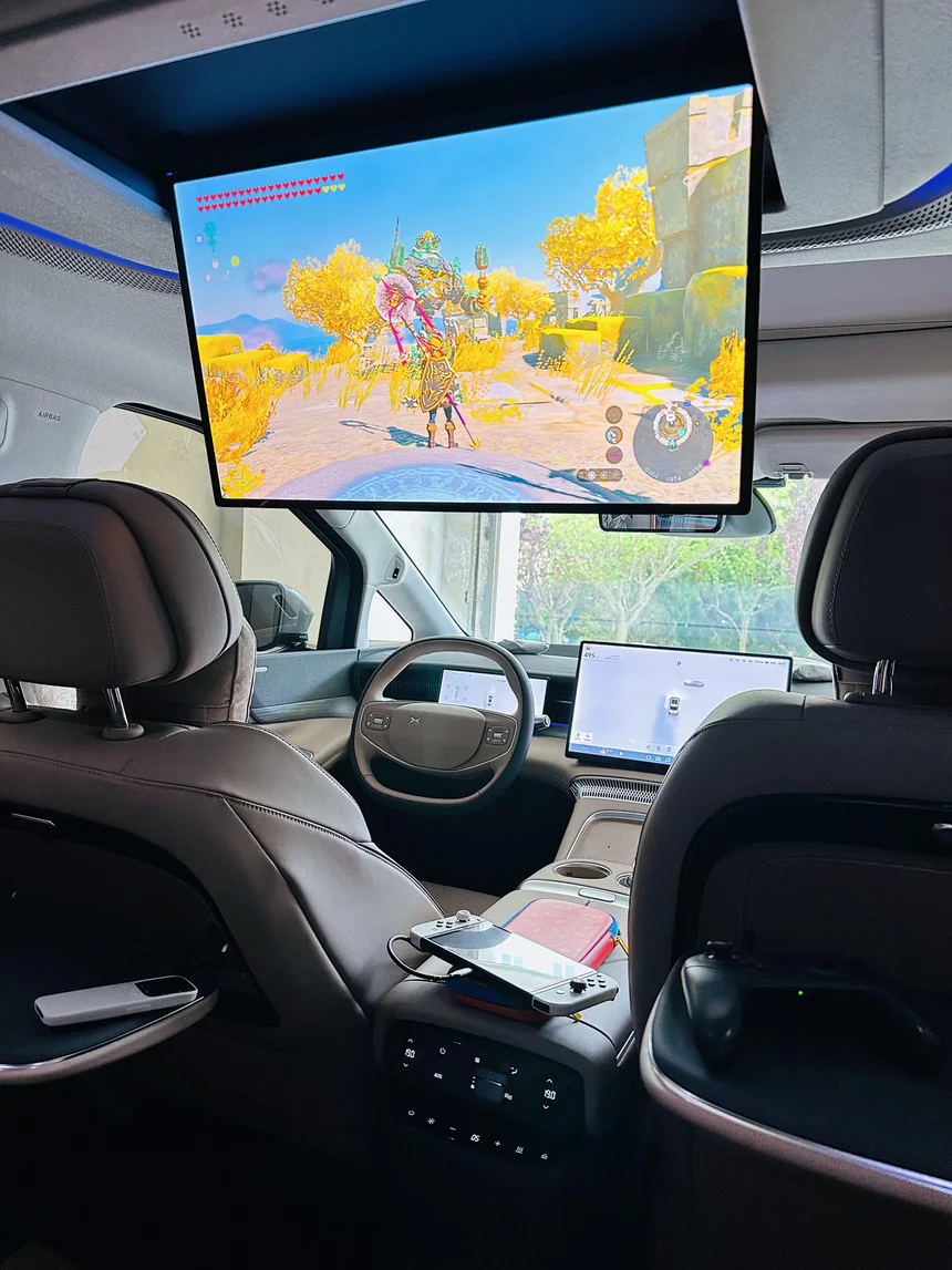 如果你问我最完美的《塞尔达传说》体验是怎样的?我的答案是:坐在X9的二排,把座椅调到最舒适的角度,打开后排吸顶屏,铺上手柄和零食。这一刻,整个海拉鲁大陆都属于我一个人。大屏幕的震撼,是掌机无法比拟的。
