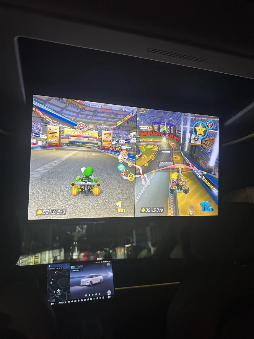 偶尔,我也想把海拉鲁的英雄身份抛在脑后。在吸顶屏上开《马力欧赛车》,看着 Link 的背影,仿佛我就在赛道上。每一条星星赛道,每一次加速,都是在追逐那久违的童真与快乐。😁