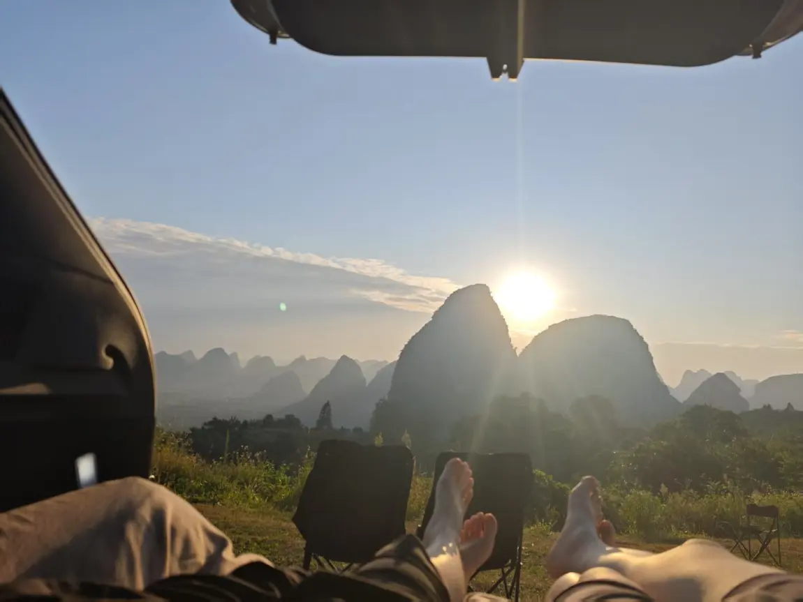 前一秒还在城市街道穿梭,下一秒便能奔赴山野,停驻在峰峦之间。看落日吻过群山,将天际染成暖金,余晖透过全景天幕洒在身上,温暖而治愈;也能寻一处海边角落,静赏晚霞铺满海面,波光粼粼,海浪轻吟成眠曲,枕着海风与星光,仿佛与自然融为一体。