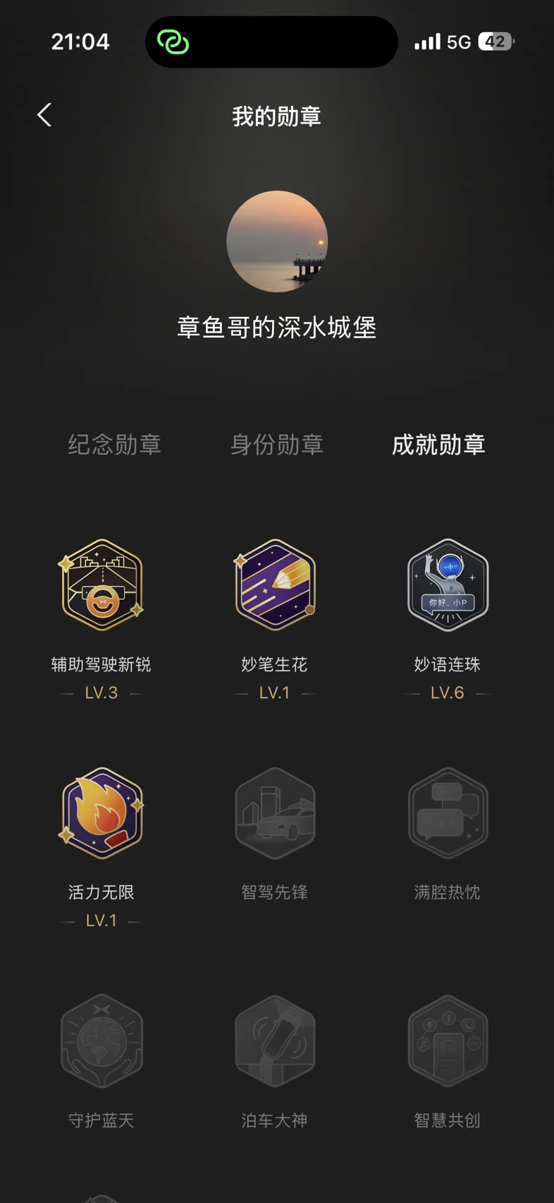 提车19天了,得到6个勋章,偶尔集一下还是蛮好玩的,我相信总有一天能征服所有的勋章。话不多说上图