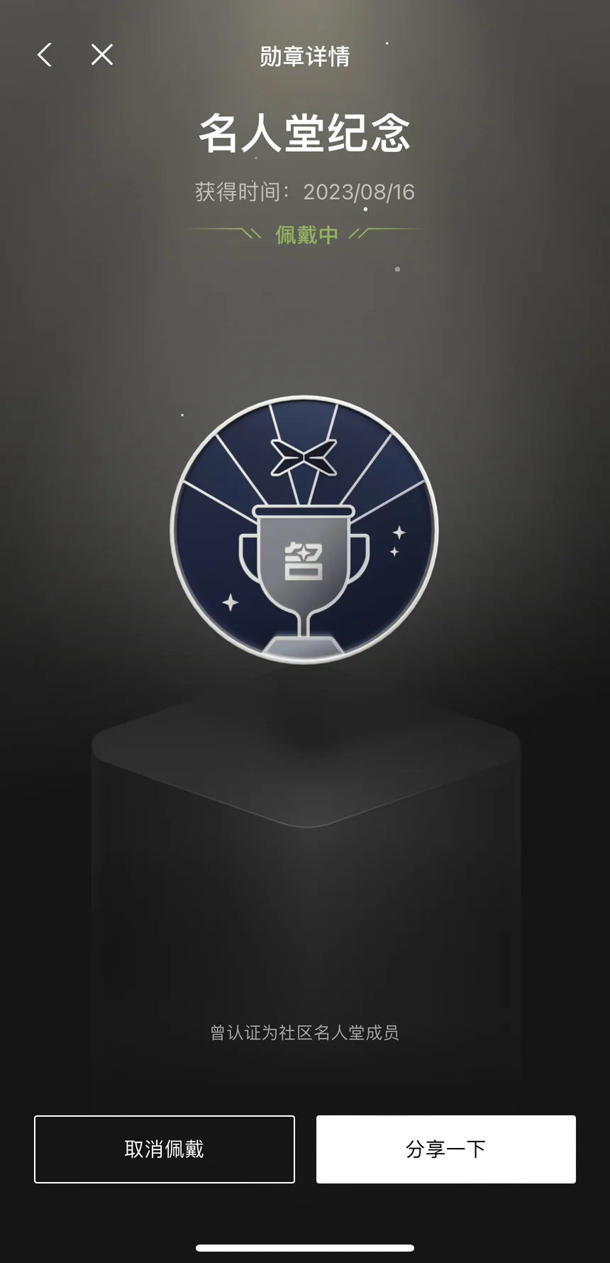 名人堂纪念这是2023年8月拿到的勋章我一直佩戴着,当时因为在社区写了不少用车帖、加入了当时的鹏友会,有幸认证了名人堂成员。这枚章对我来说不只是个荣誉,更像个小纽带,每次看到都能想起在社区分享、唠嗑的日子。