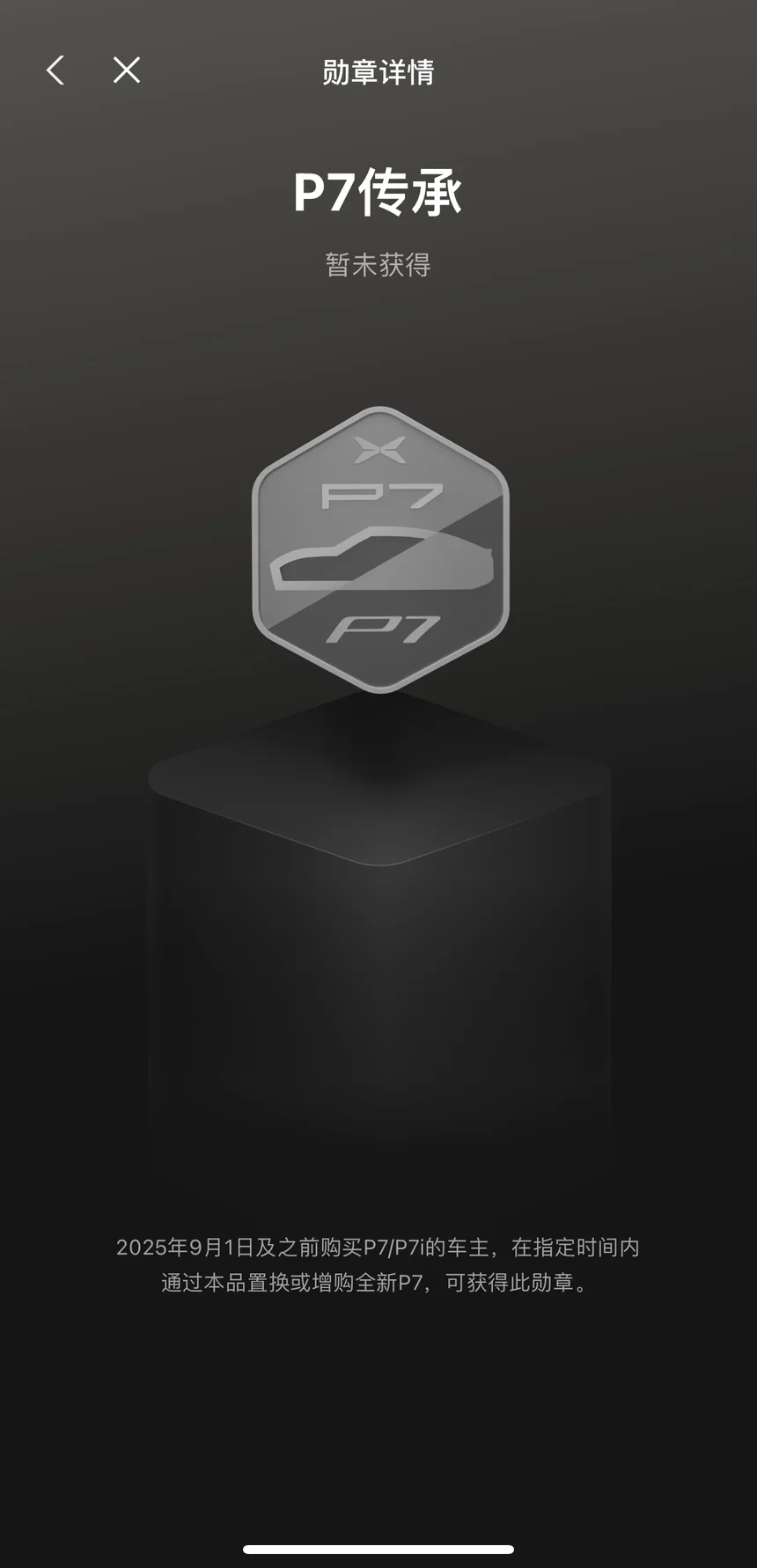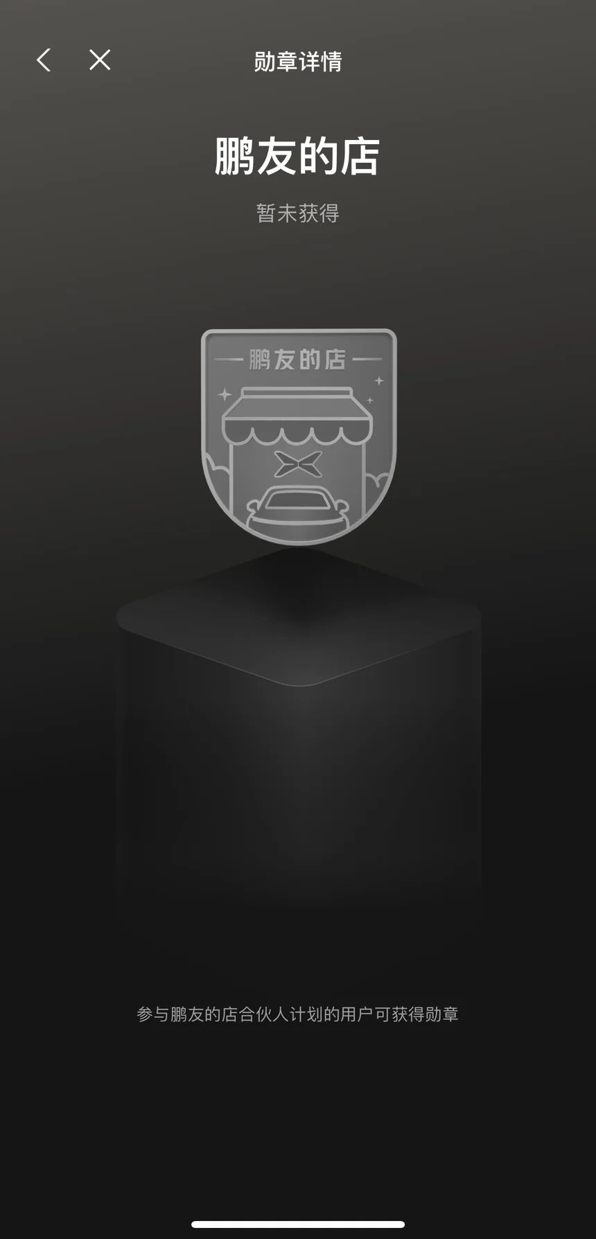 也有遗憾,像P7传承和鹏友的店还没点亮,尤其是鹏友的店这枚勋章,我心里一直盼着以后能有个自己的小店,摆上咖啡和车模,让路过的鹏友都能停下来歇脚、唠唠用车的故事,把更多热爱小鹏的人聚在一起。