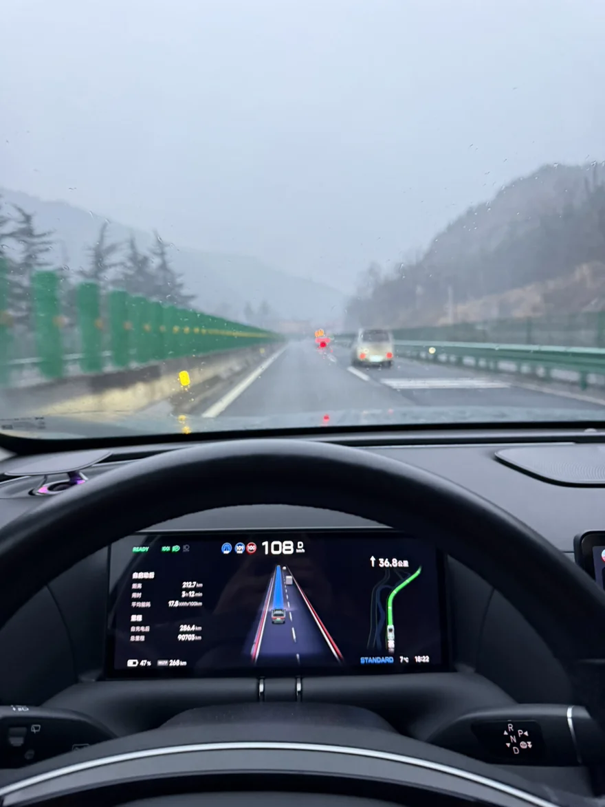#我的辅助驾驶高光时刻# 周五了从延安出发,后备箱塞满了给父母带的东西,细雨淅淅沥沥打在车窗上,却一点没打乱回家看父母的节奏。